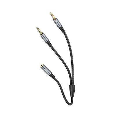 Кабел Hoco AUX 2in1 Jack 3,5 mm (female) to 2 x Jack 3,5 mm (male) UPA21 0,25 m metal сив