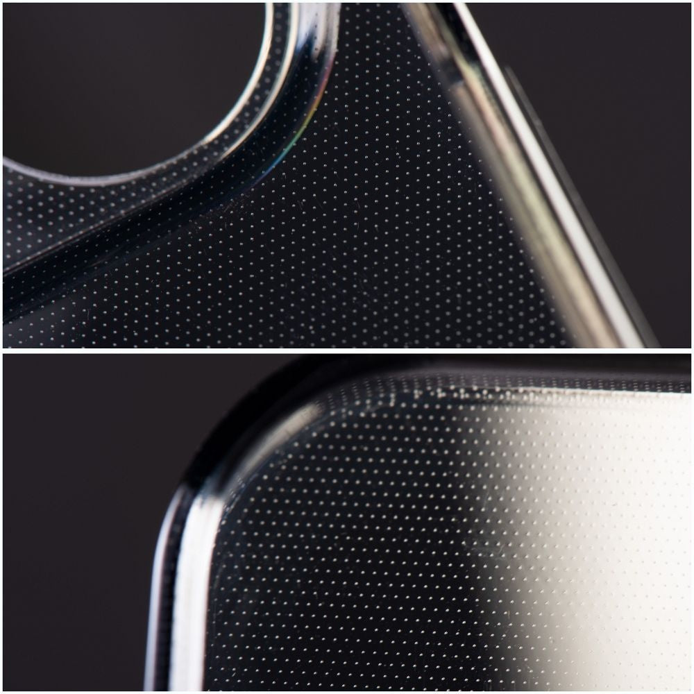 Калъфът се характеризира с фин "опушен" цвят, т.е. черен нюанс на прозрачност. Изработен е от здрава, непожълтяваща пластмаса, която абсорбира добре ударите, предпазвайки телефона от ефектите на падане. Прозрачният дизайн подчертава оригиналния външен вид на смартфона, а дебелината от 1,5 мм не удебелява тънкия профил. Повдигнатият ръб около ръбовете и островът на камерата осигуряват допълнителна защита за обектива, а внимателно проектираните изрези гарантират лесен достъп до всички портове и функции на устройството.