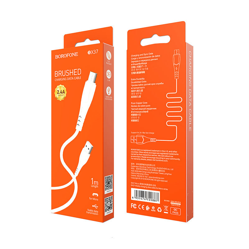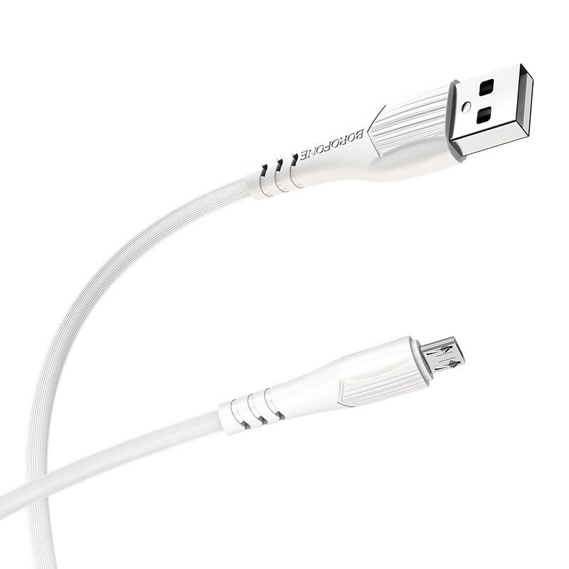 BOROFONE BX37 Wieldy charging data cable for Micro-USB, 1m, PVC connectors 1. Length 1m. Weight 20g. 2. Outer braid: PVC. 3. Connector: PVC. 4. Wire core: 72 copper wires, support data transmission.
