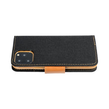 Модерен и оригинален калъф. Стилните шевове и елегантните цветови комбинации го правят идеално подчертаващ оформлението на телефона и предоставят свободата да го използвате. Калъфът е изработен от удобни материали в стилни цветови комбинации. Има елегантни шевове както отвътре, така и отвън. Отвътре калъфът е завършен с материал в цвят на гарнитурата, която идеално имитира кожата. Калъфът е с удобна магнитна закопчалка и се разглобява в позиция книжка. Вътре има практични джобове за документи, включително един по-голям, който побира повече бележки и банкноти. Телефонът е поставен сигурно в силиконова вложка, идеално съобразен със специален модел устройство, което има необходимите изрези за зарядно устройство, бутони за сила на звука и други функционални клавиши, както и високоговорителите и обектива на камерата. Калъфът има функция за стойка за телевизор, която улеснява напр. гледане на филми и сърфиране в интернет. Материал: Материал, имитиращ дънки & Еко кожа & TPU