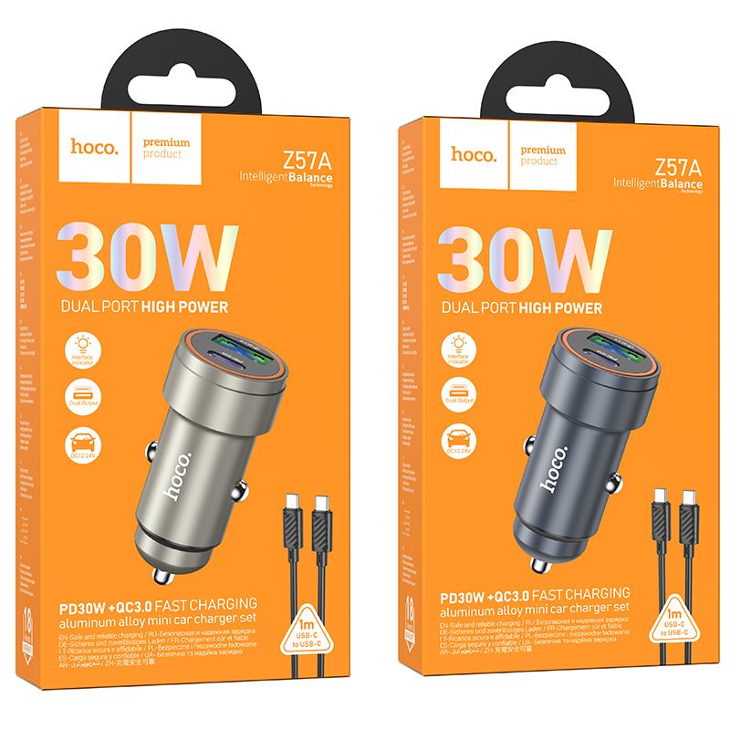 The Hoco Z57A C car charger is a functional solution for people who need fast and reliable charging on the go. Equipped with two ports - USB-C and USB-A - it supports popular fast charging standards such as Power Delivery, Quick Charge, FCP and AFC, offering power up to 30 W.