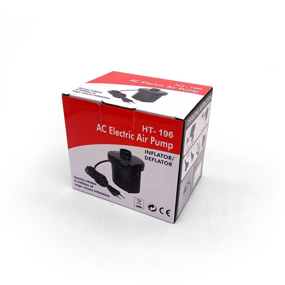 Discover the practicality and efficiency of the HT-196 electric pump - your ideal companion for holidays, camping and outdoor fun. Thanks to three different tips and a solid construction, you can quickly inflate mattresses, pontoons, balls or garden pools.