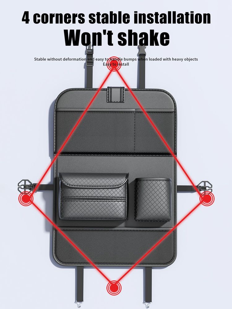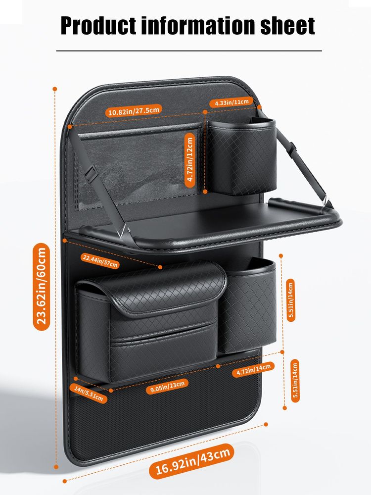 • Functionality: The organizer can act as a work table or a place to store small items, ideal for use in the car while traveling.
