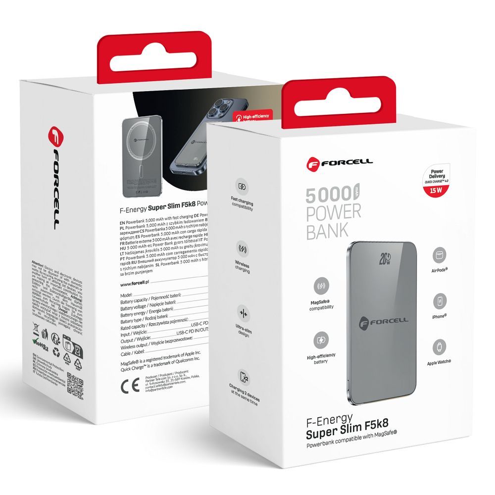 F-Energy Super Slim F5k8 is a modern power bank designed especially for iPhone, Apple Watch, and AirPods users. It is ultra-thin and convenient to store and transport. The power bank is distinguished by its solid workmanship, created from durable materials such as tempered glass and aluminum. Its additional advantage is support for fast charging technology.