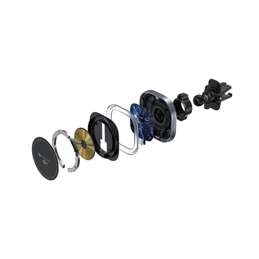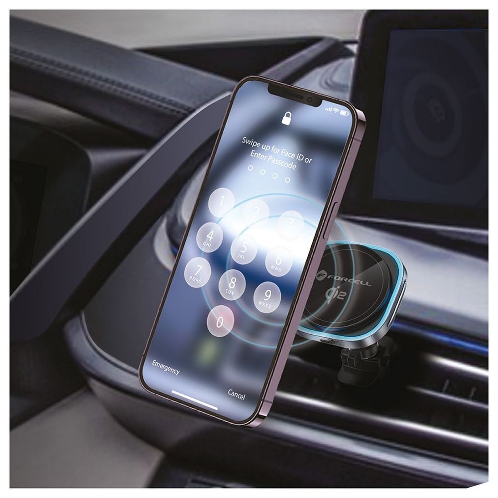 Forcell F-Grip AirMag is a modern car vent mount with fast wireless charging based on the new Qi2 standard. Thanks to MagSafe® compatibility, strong built-in magnets, and up to 15 W of charging power, it offers both convenience and safety while driving.