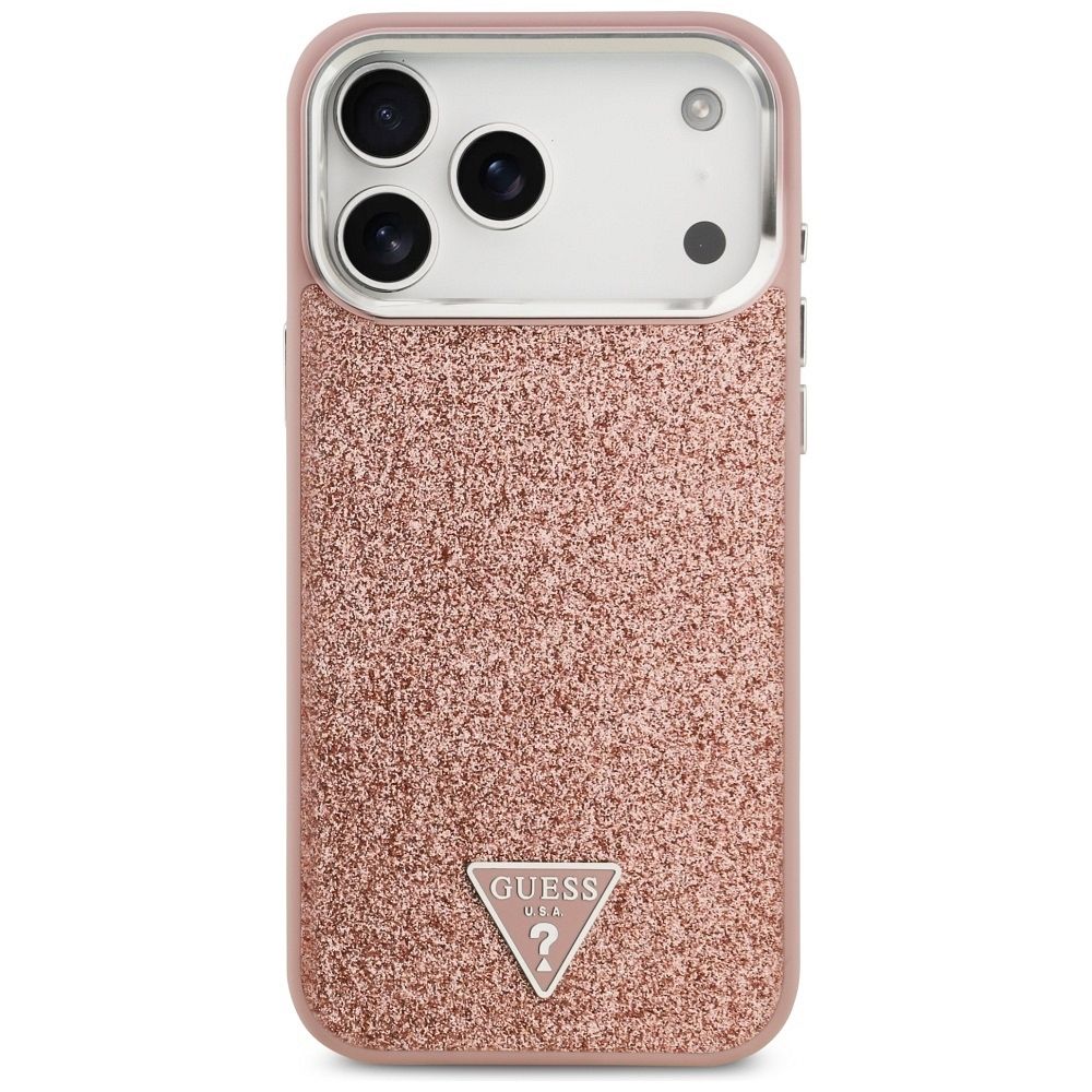 GUESS case for IPHONE 17 Pro Max compatible with MagSafe GUHMP17XPFGTSCMP (PU Glitter W/ Triangle Logo) pink