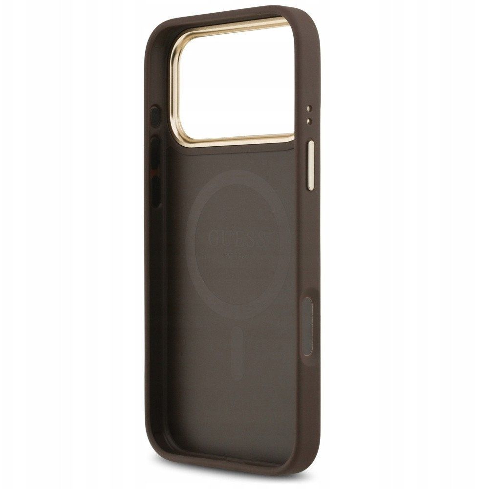 Оригинален гръб GUESS за IPHONE 17 Pro Max compatible with MagSafe GUHMP17XPSAMSECW (PU W/ Peony Hot Stamp) кафяв