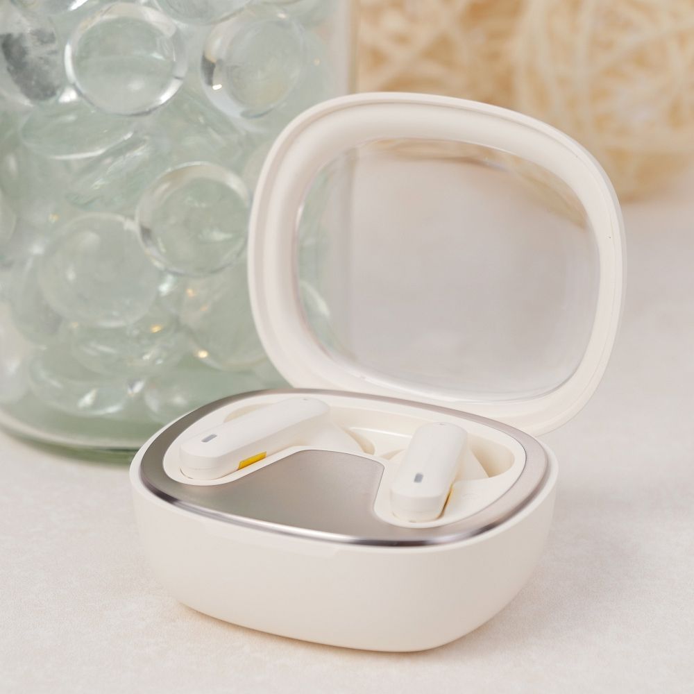 Удобни, удобни TWS слушалки пасват добре на ушите ви, така че няма да почувствате никакъв дискомфорт дори след много часове използване. Bluetooth връзката позволява слушане на музика или аудиокниги, както и провеждане на разговори, благодарение на вградения микрофон. Преносимият калъф с функция за зареждане гарантира, че слушалките винаги ще бъдат заредени, а компактният дизайн ви позволява да ги носите навсякъде, докато ги съхранявате безопасно.