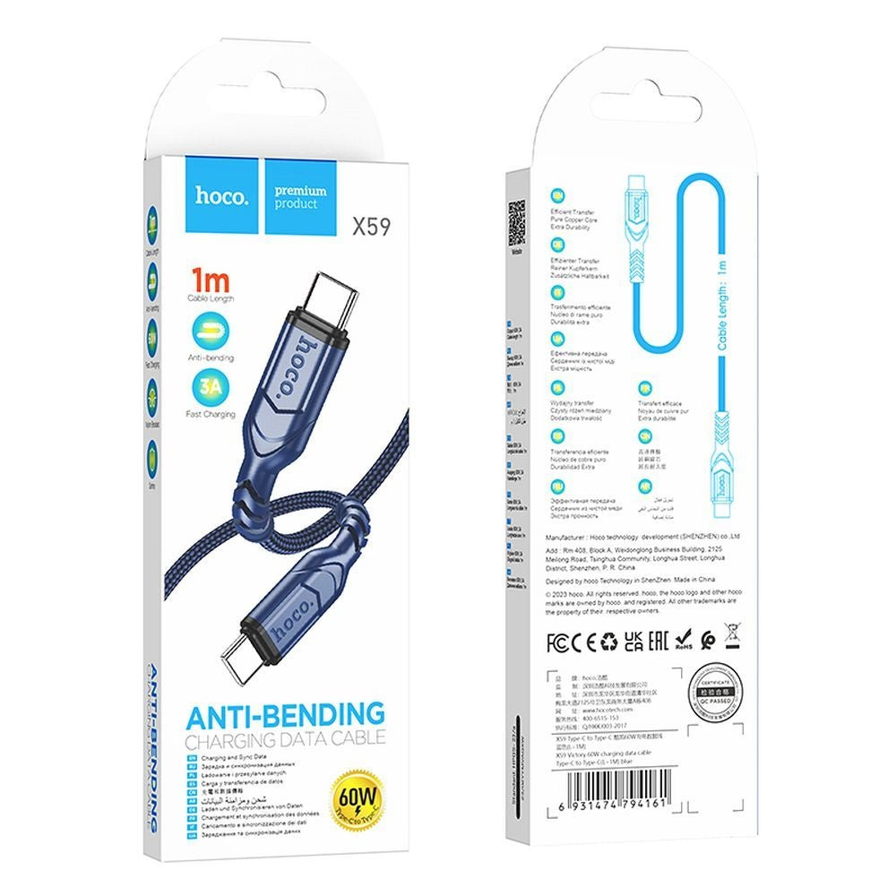 HOCO кабел Type C към Type C PD QC 3A 60W X59 2 м син
