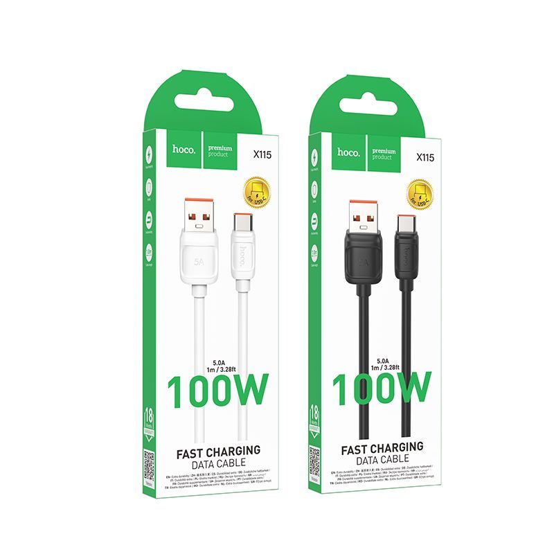 Fast charging USB-A - USB-C cable from Hoco (X115). Enables fast charging with up to 100 W and data transfer. Supports Power Delivery protocol, and thanks to its high power it allows you to charge laptops.