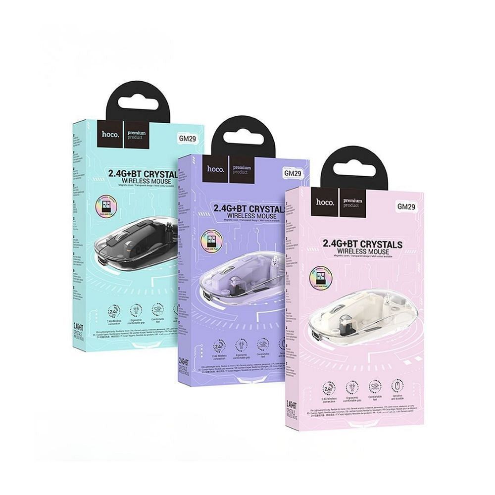HOCO GM29 wireless optical mouse with 4 buttons and a scroll wheel. The mouse has a sensor with variable sensitivity of 800-1200-1600 dpi.