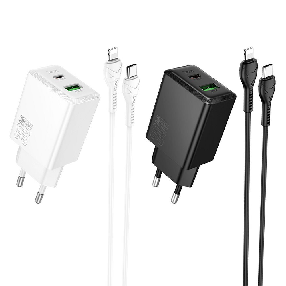 HOCO wall charger USB A + Type C + cable Type C to Type C 60W PD QC3.0 AFC 3A 30W N71 white