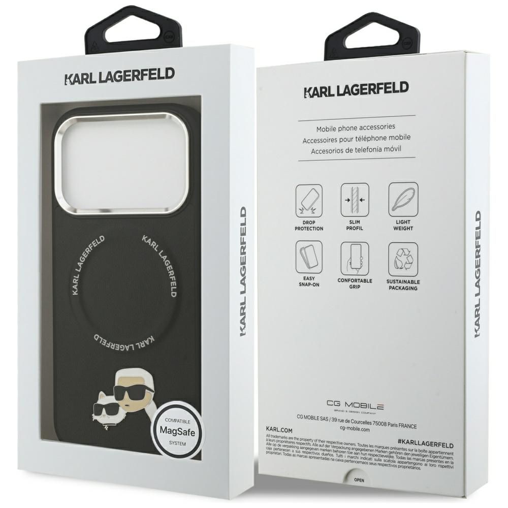 Оригинален гръб KARL LAGERFELD за IPHONE 17 Pro compatible with MagSafe KLHMP17LPSMLRKCK (PU K&C Pins) черен