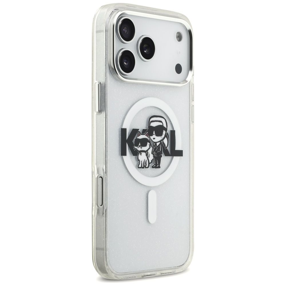 Оригинален гръб KARL LAGERFELD за IPHONE 17 Pro Max compatible with MagSafe KLHMP17XHGKCGKBT (IML Glitter K&C Sketch Logo) прозрачен