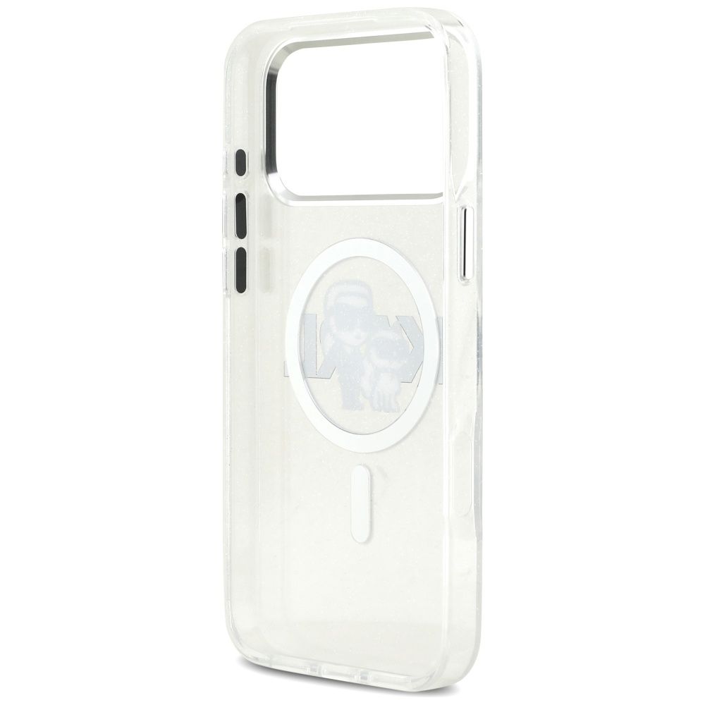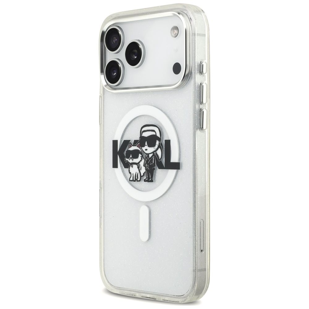 KARL LAGERFELD case for IPHONE 17 Pro Max compatible with MagSafe KLHMP17XHGKCGKBT (IML Glitter K&C Sketch Logo) transparent