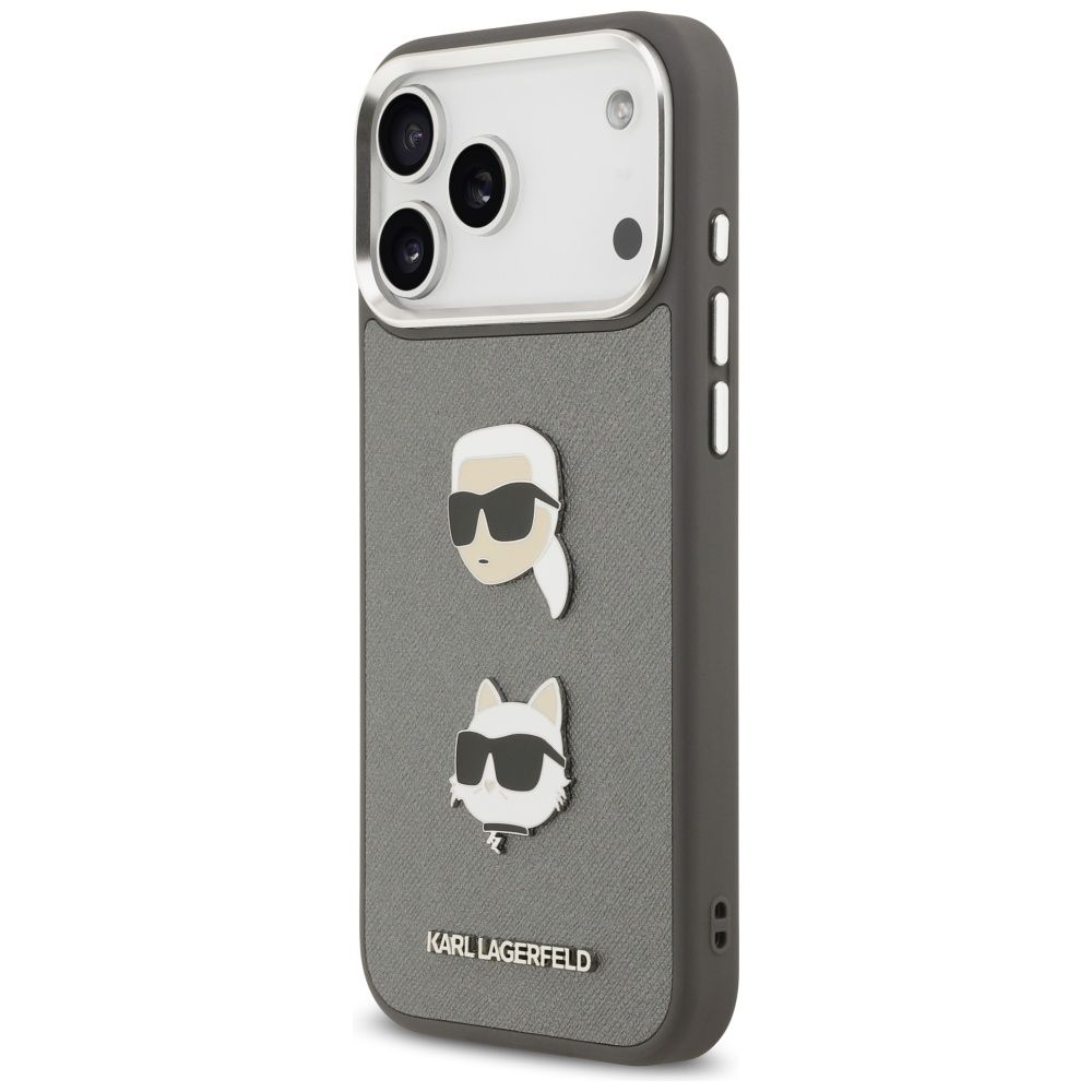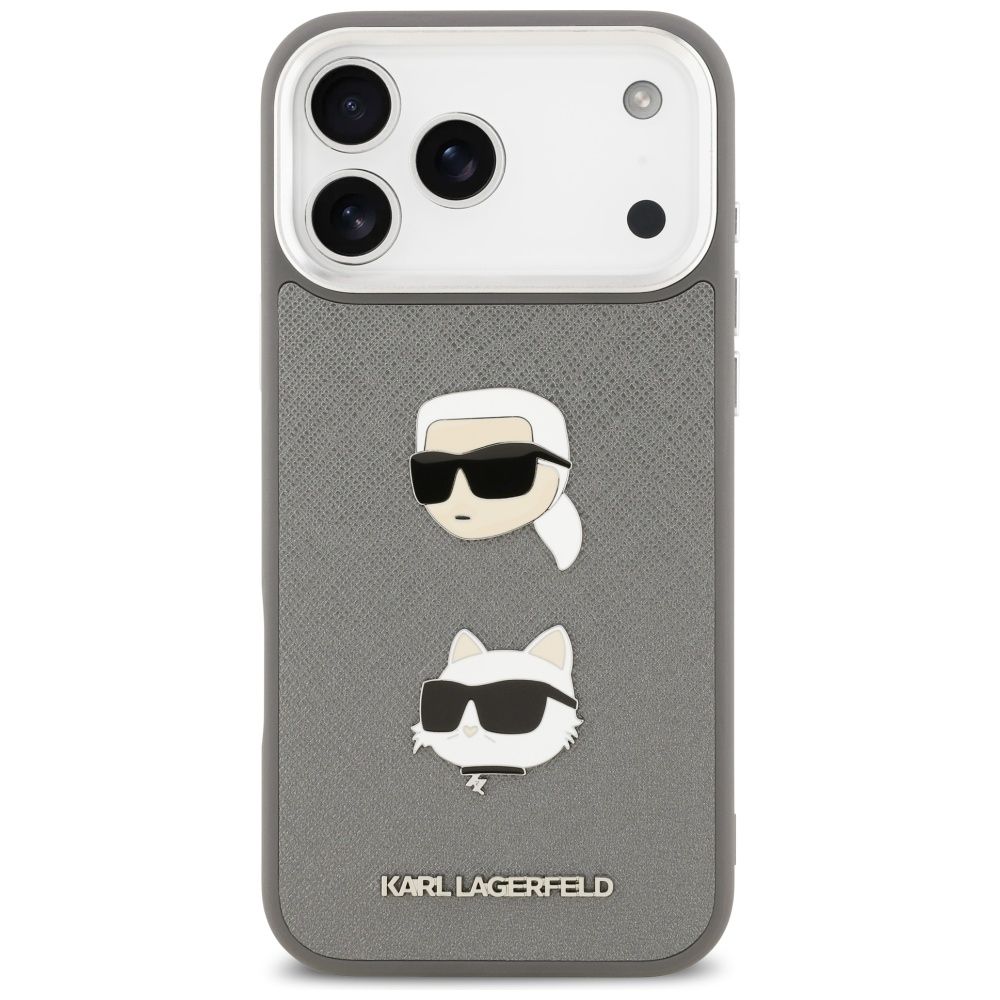 KARL LAGERFELD case for IPHONE 17 Pro Max KLHCP17XPSFDHPOG (FW Grained PU W/ K&C Heads Pin & Logo) gray