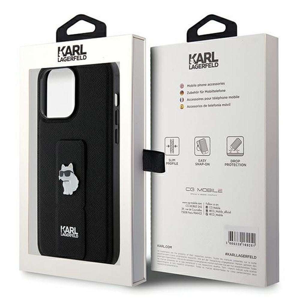 Оригинален гръб KARL LAGERFELD за IPHONE 13 Pro Max KLHCP13XGSACHPK (Gripstand Saffiano choupette PIN) черен