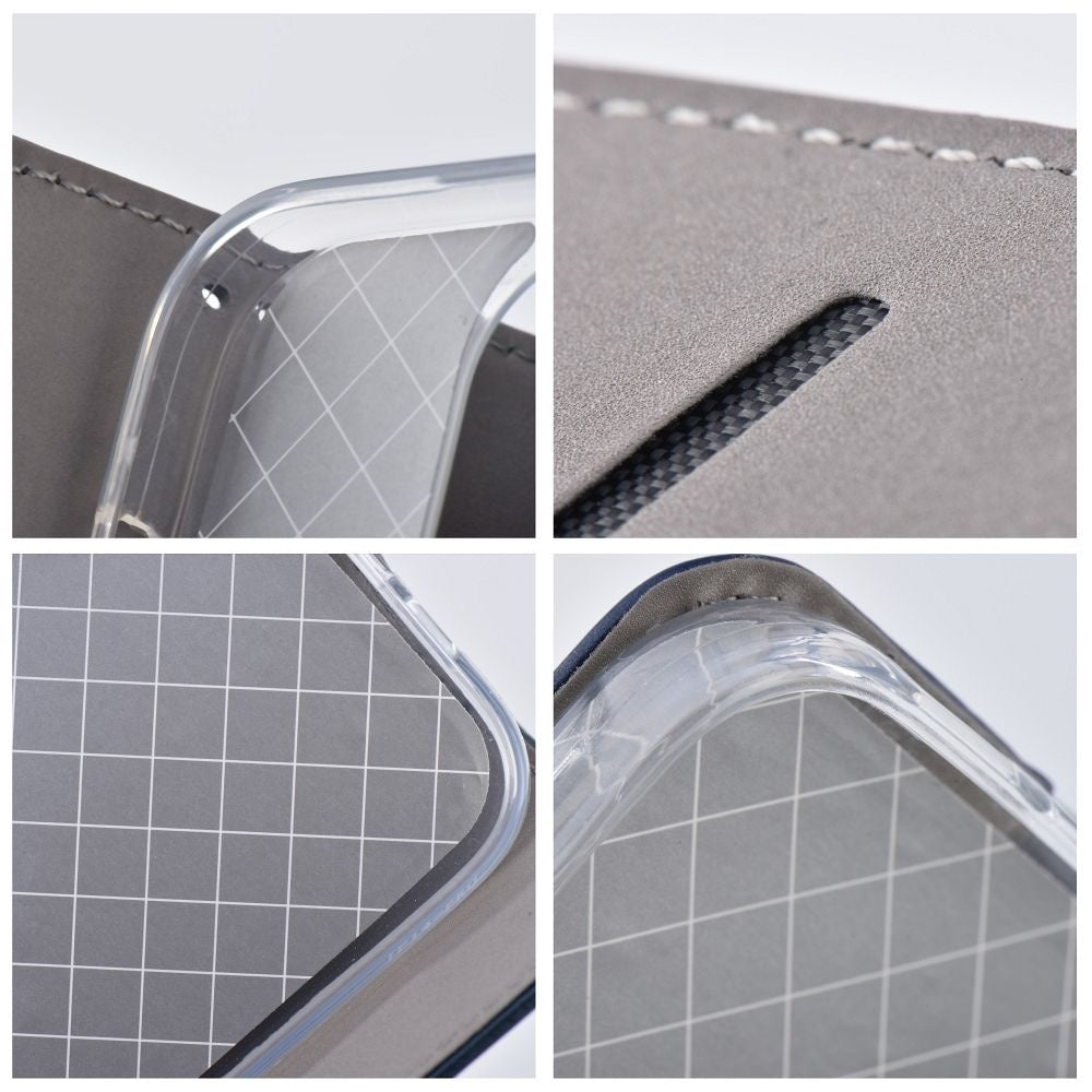 Kabura Smart Magneto to klasyczny pokrowiec na telefon z funkcją portfela oraz TV stand. Wykonana z materiału o metalizującej strukturze, w środku wyścielona miękką tkaniną chroniącą ekran telefonu przed zarysowaniami. Posiada zapięcie na magnes.