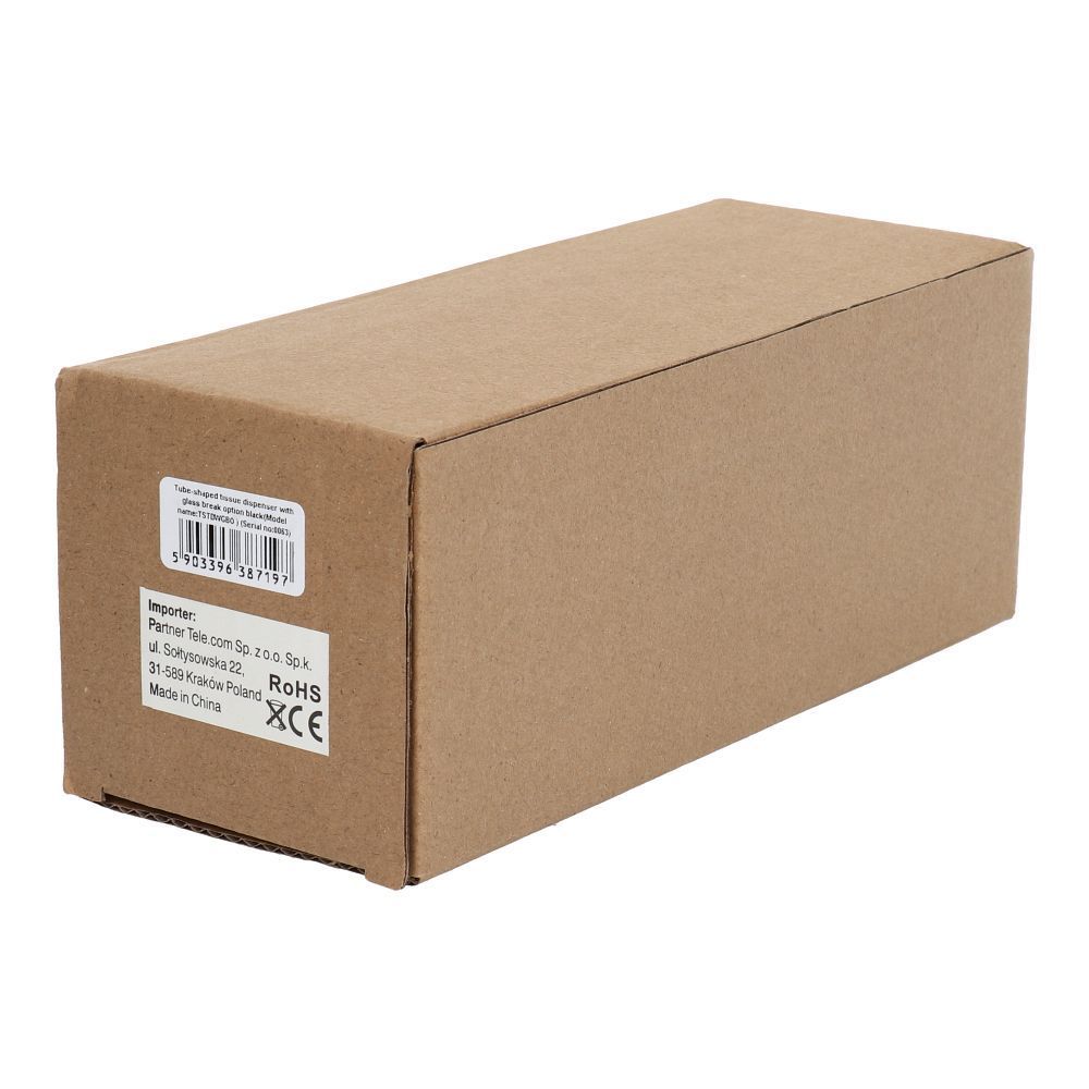 The tube-shaped tissue dispenser with the option of breaking the glass is an elegant and functional addition to any interior. Made of high-quality ABS and PU plastic, the container ensures durability and an aesthetic appearance. Its modern design makes it ideal for any room, and the ability to easily break the glass allows for quick and convenient removal of tissues.