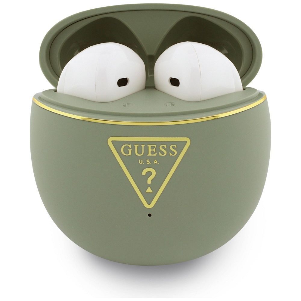 TWS Guess Gold Line Triangle Earphones are stylish wireless earphones that combine high sound quality with the elegant design characteristic of the Guess brand. Designed with everyday use in mind, they offer functionality and comfort both when listening to music and making calls.