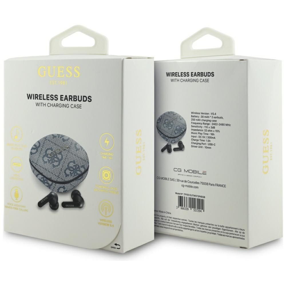 The Guess 4G Classic Metal Logo TWS headphones combine the fashionable character of the Guess brand, high-quality sound, and comfort of everyday use. They're for those who expect both great sound and an elegant, recognizable design.