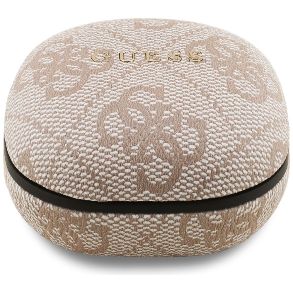 The 4G Classic Metal Logo model features a case covered in eco-leather with the distinctive embossed 4G pattern and the metal Guess logo. Refined details give the headphones a luxurious feel, and the compact design makes them perfect as an everyday, fashionable accessory.